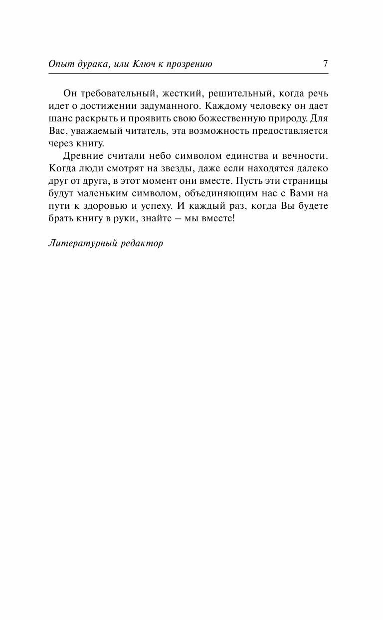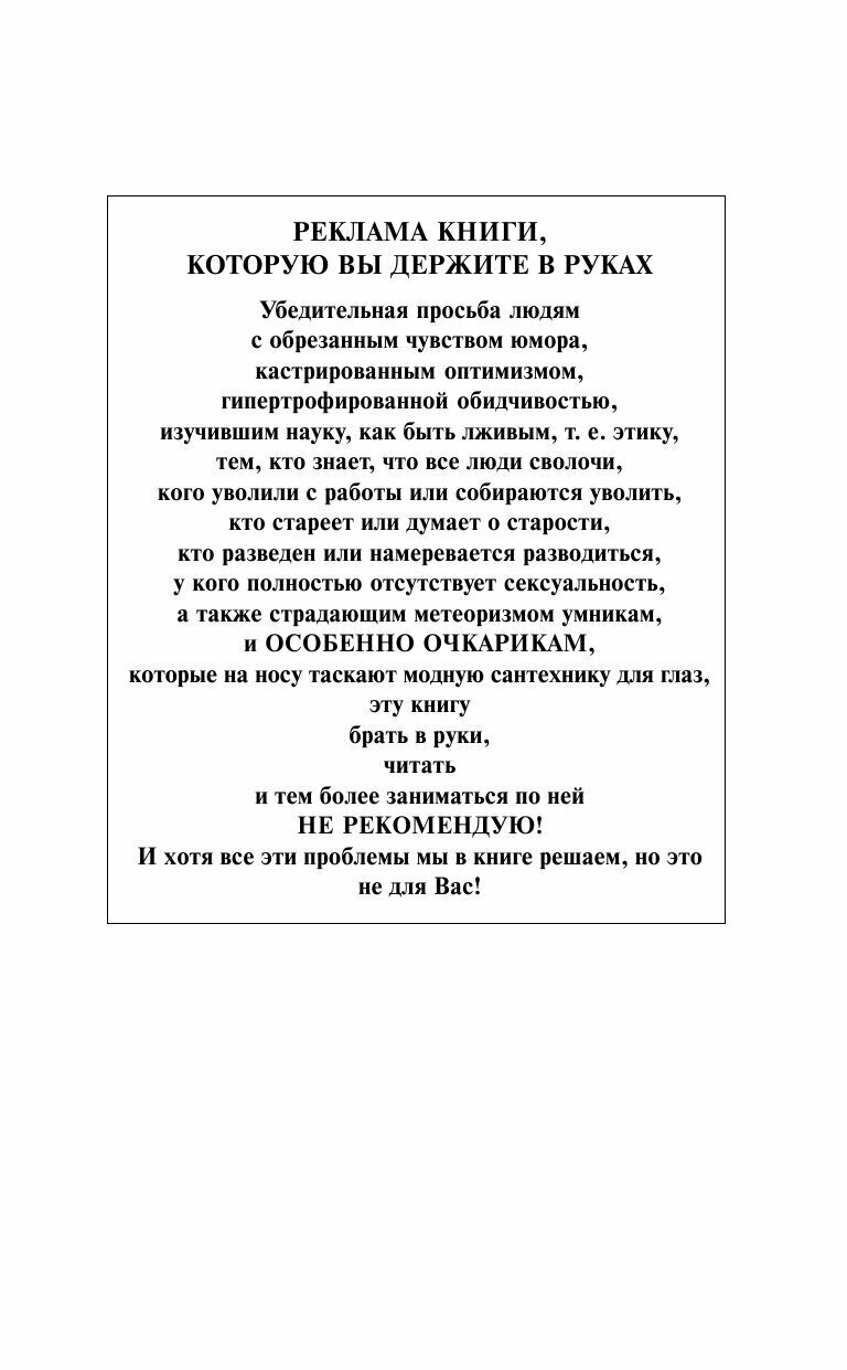 Совершенно точно, что эта книга никого не оставит равнодушным. Ни одного человека! У кого-то она вызовет неприязнь и агрессию, а кто-то за необычной формой откроет для себя что-то истинное и сокровенное. Одним словом, вы держите в руках книгу-тест на определение способности читать между строк, видеть глазами сердца и открывать глубинную суть вещей.