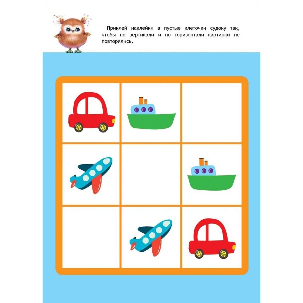 Лист с многоразовыми наклейками, необходимыми для выполнения некоторых заданий, находится в середине книги.