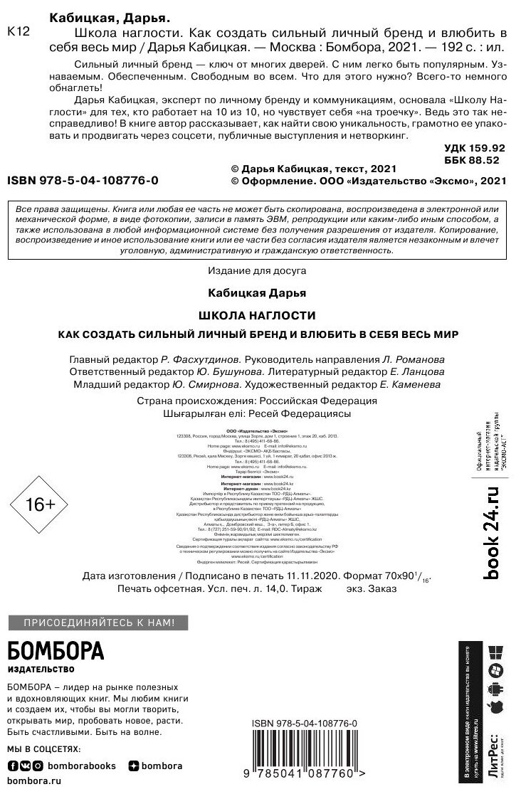 Школа наглости. Как создать сильный личный бренд и влюбить в себя весь мир (Дарья Кабицкая); Эксмо, БОМБОРА, 2021