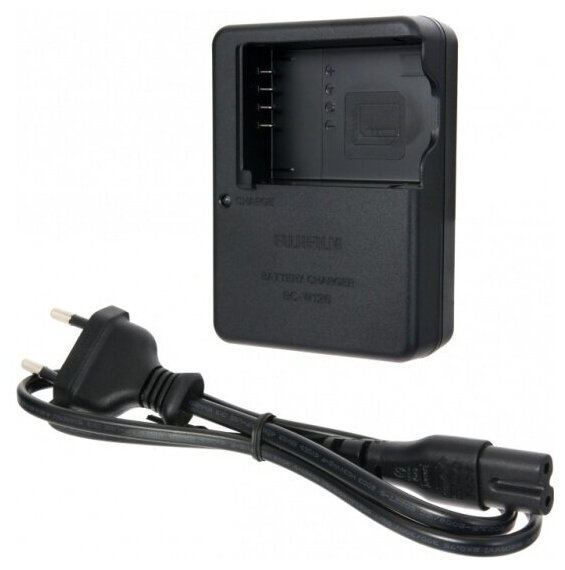 Зарядное устройство для аккумулятора Fujifilm NP-W126S. Работает при напряжении от 100 до 240 В. Полная зарядка приблизительно за 150 минут.