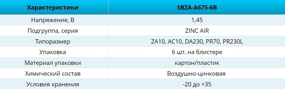 Батарея Smartbuy A675-6B для слуховых аппаратов (SBZA-A675-6B)