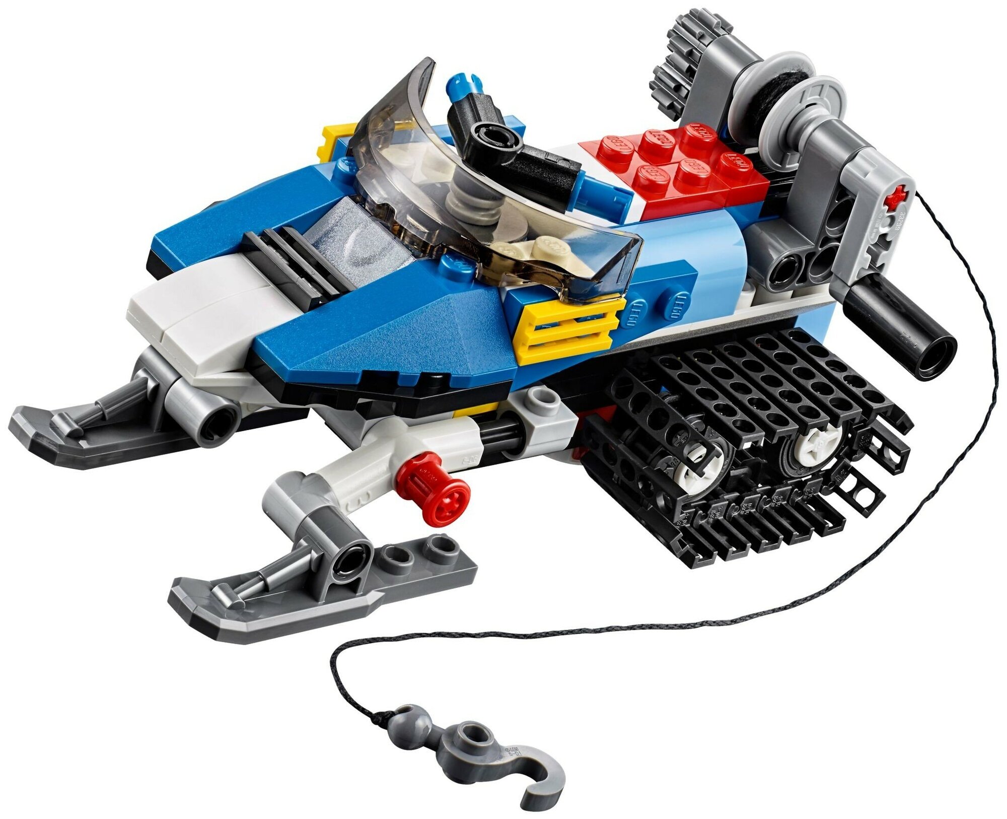 Запускай оба винта этого удивительного вертолета и взлетай в небо. Опусти лебедку, прицепи гусеничный трактор-снегоход и перебрось его в нужное место. Выполни идеальную посадку на лед и снег, используя лыжи вертолета! Двухвинтовой вертолет 3-в-1 от LEGO Creator отличается высокотехнологичным дизайном в голубой и белой цветовой гамме и может быть трансформирован в снегоход с функционирующей лебедкой или самолет с одним двигателем и крутящимся пропеллером.