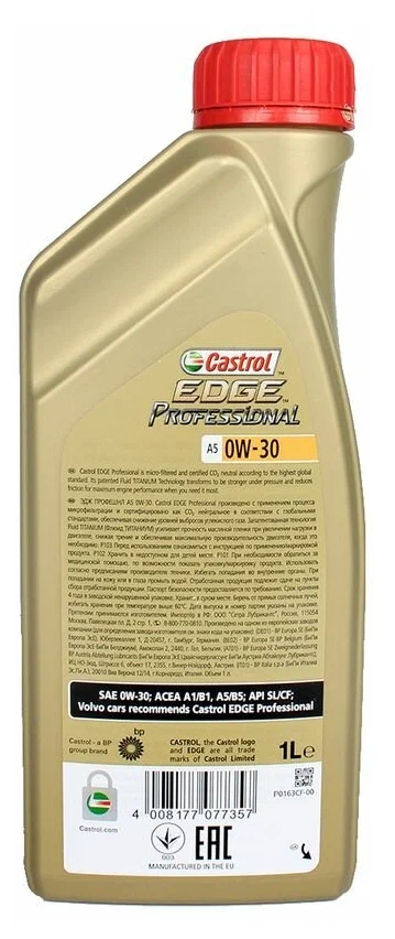| Допуски OEM | Volvo cars recommends Castrol EDGE Professional,Fiat 9.55535-S2,GM Dexos 2,MB 229.31,VW 505 00,VW 505 01,WSS-M2C917-A |