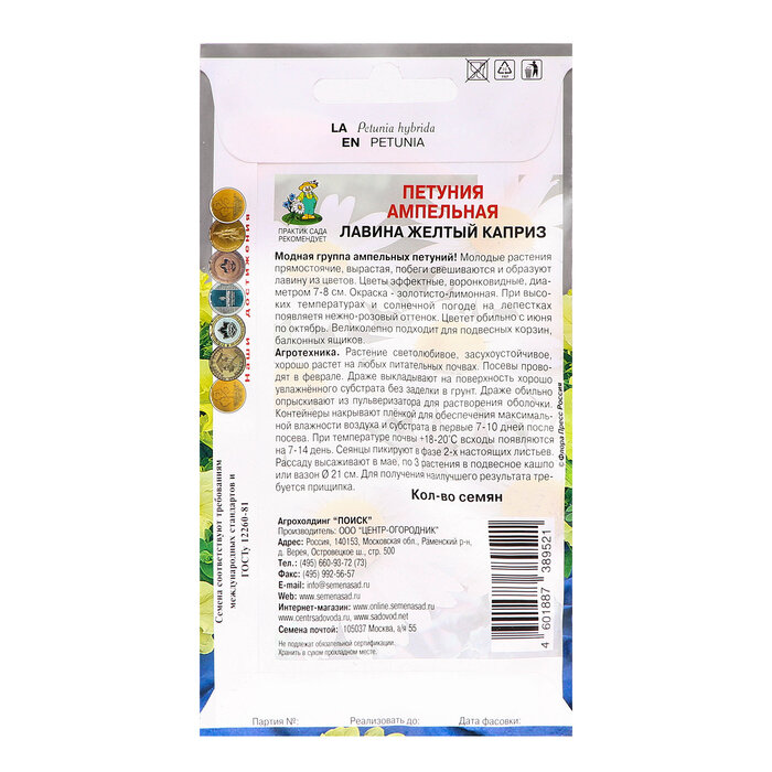 Сервис сравнения цен СкидкаГИД предлагает сравнить цены на товар «Семена Петуния Лавина Желтый каприз 10 шт ПОИСК»