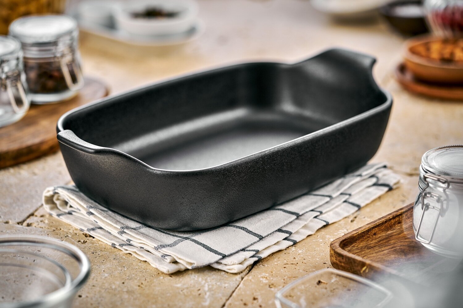 Серия посуды для приготовления блюд в духовке IRON-BLACK. Она выглядит как традиционный чугун: горшочки и формы для запекания и тушения выдерживают от -20ºC до +250ºC и перепад температур в 160ºC. Если вы запекли буженину и внезапно сорвались в командировку, просто поставьте мясо в морозильную камеру прямо в форме.