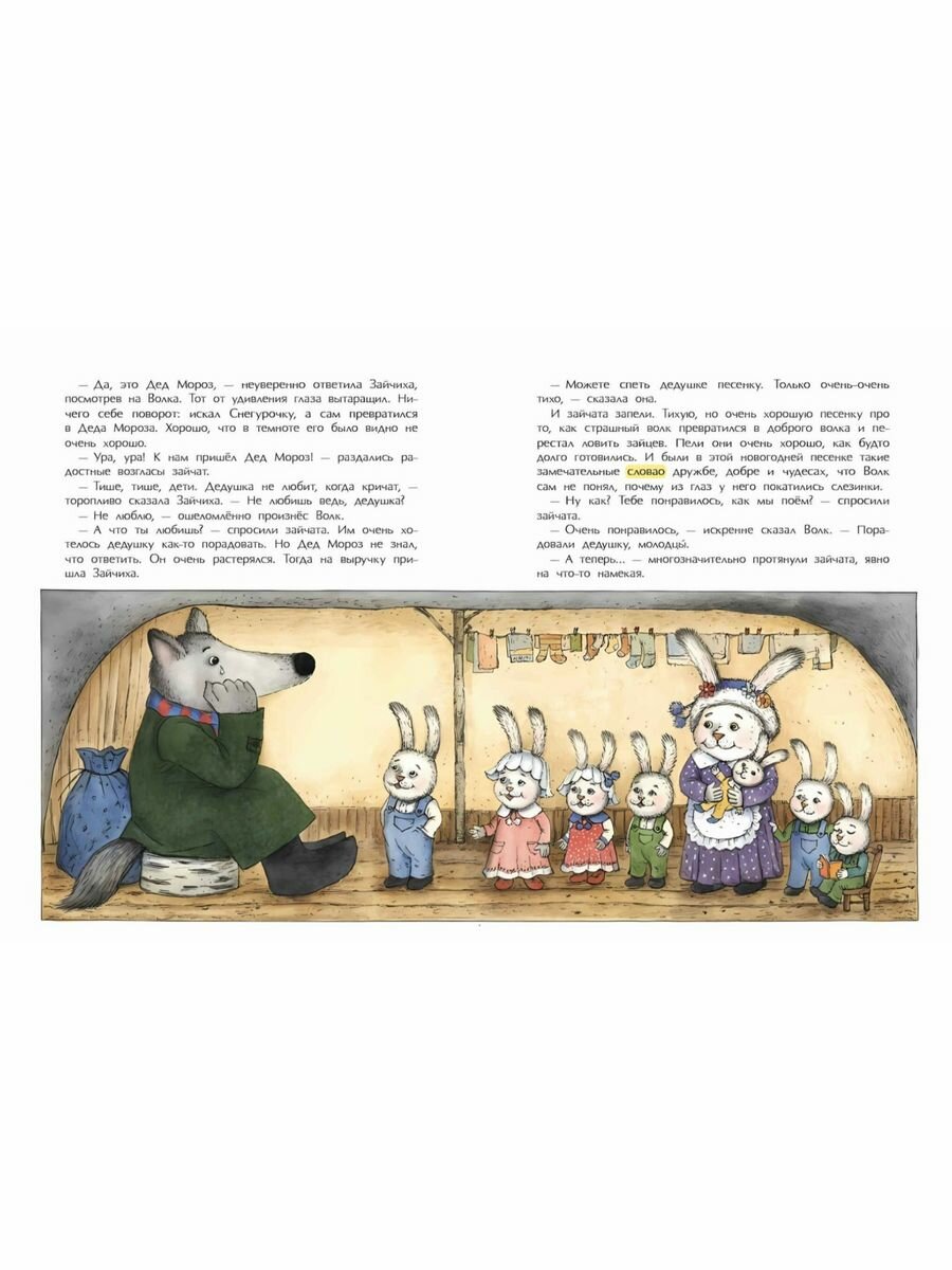 Чудесная сказка! Волшебство и доброта! Волчата очень хотят чтобы к ним пришли Дед Мороз и Снегурочка, папа волк озадачен и идет искать. И кто ему поможет? Зайка! Вот так вот в сказках бывает, ты охотишься на них целый год, они тебя бояться, но помогают… Почему потому что доброта и любовь спасет мир! И ситуацию с детками, зайки увидят Дед Мороза а волчата Снегурочку! И добрейшего Волка в конце вы увидите, просто перерождение! Ну сказочно хорошо!