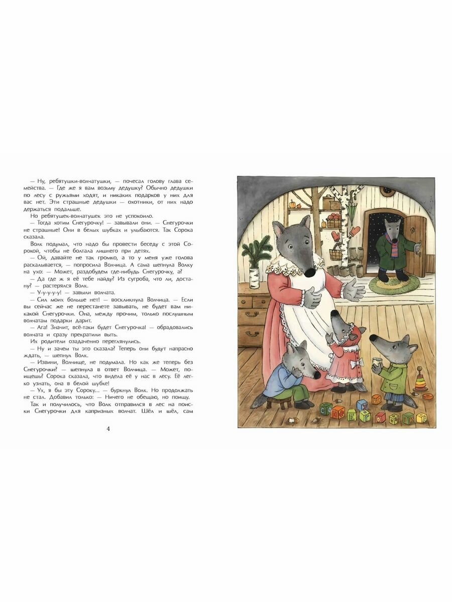 Очень милая книжка с симпатичными рисунками, шрифт крупный и удобный, формат А4. Но совсем маленькая очень тонкая, всего 24 страницы, обложка и страницы тонкие, легко помять. Но и цена небольшая, так что за свою цену хорошее издание. Очень уютная книжка, к новому году отлично подходит