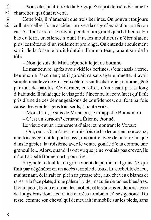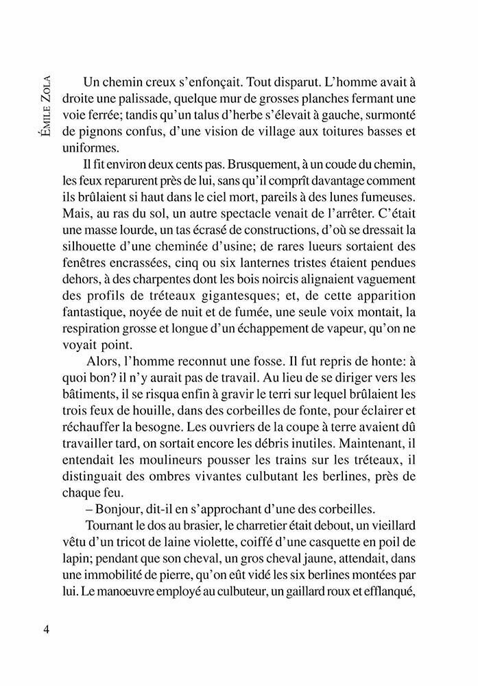 История написана Эмилем Золя грустная и интересная, она о работающих в угольной шахте во Франции, описывает кровавую забастовку, положившую начало рабочему движению. Книга начинается с Этьена, который прибывает на шахту в поисках работы и знает Боннеморта, прозванного так потому, что он бесчисленное количество раз пережил несчастные случаи на шахте. Этьен очень близок к семье Доброй Смерти, где в шахте работают практически все, кроме более несовершеннолетних детей и матерей. Как и большинству семей в этом районе, нужно заботиться о них, поскольку чем больше людей работает, чем больше денег на хлеб, тем лучше, потому что зарплата мизерная. Условия труда на шахте нечеловеческие, спускаться в ее недра — ежедневная авантюра. Этьен начинает подстрекать рабочих к забастовке, поэтому они решают сделать резервный фонд, чтобы не голодать в период забастовки. Оказывается, эти собранные деньги вскоре заканчиваются, а при угрозе начальства всех уволить и привести туда других рабочих, некоторые бастующие начинают хотеть вернуться на работу, чтобы не голодать, создавая ситуацию еще большего напряжения.