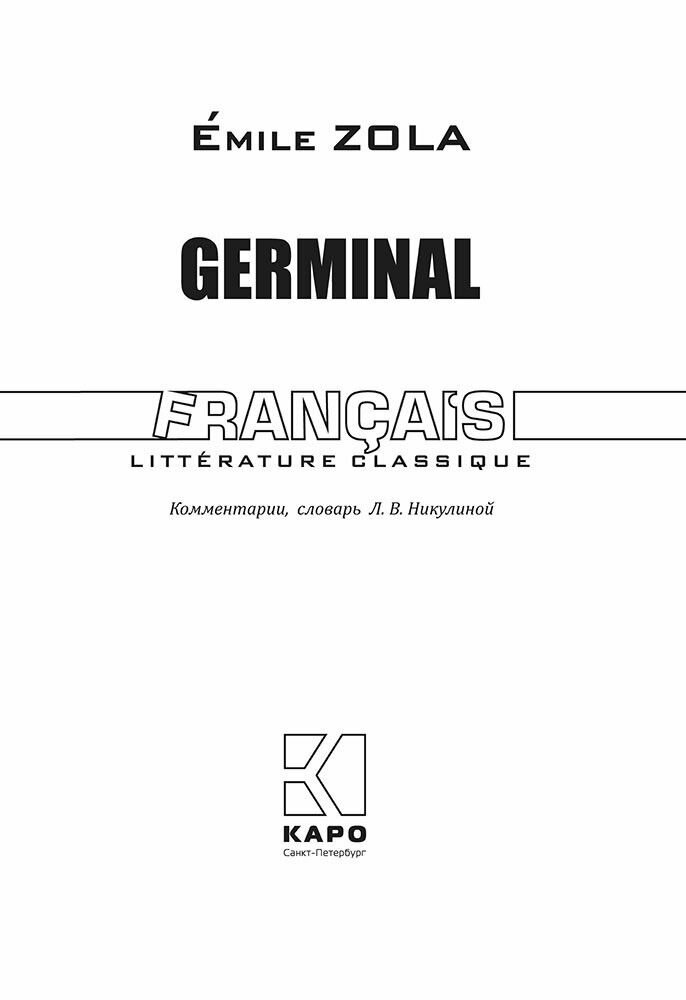 Жерминаль (книга для чтения на французском языке неадаптир.) (Zola E.); Инфра-М, 2020