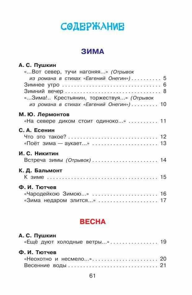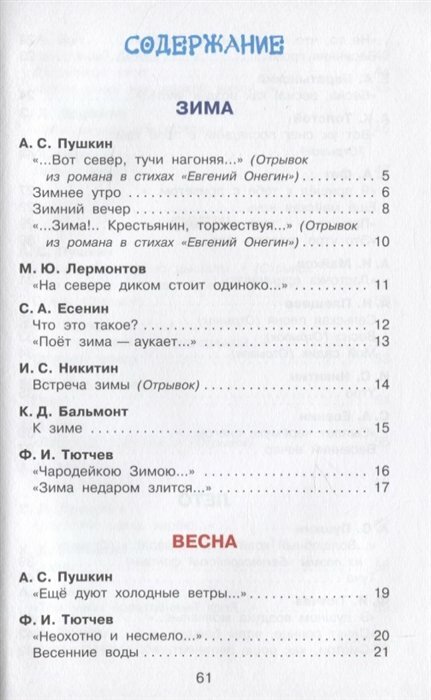 | Автор | Пушкин А.С.; Есенин С.А.; Тютчев Ф.И. |