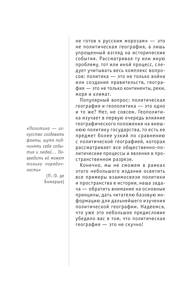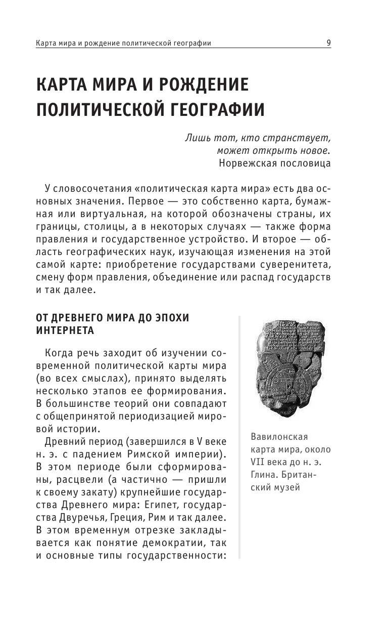 Для каждого из нас Вселенная состоит из множества вещей, мест, живых существ и еще миллиона различных понятий, которые даже физически нельзя потрогать. Однако символически весь мир можно увидеть на карте или глобусе. Эта книга посвящена одному из таких универсальных символов — политической карте мира. Карте, на которой разными цветами обозначены страны, и отмечены их столицы, границы и многое другое. С помощью этой книги вы сможете стать начинающим специалистом по политической географии — науке, которая помогает увидеть за этой картой десятки тысяч реальных процессов, которые определяют повседневную жизнь и будущее живущих на Земле миллиардов людей.