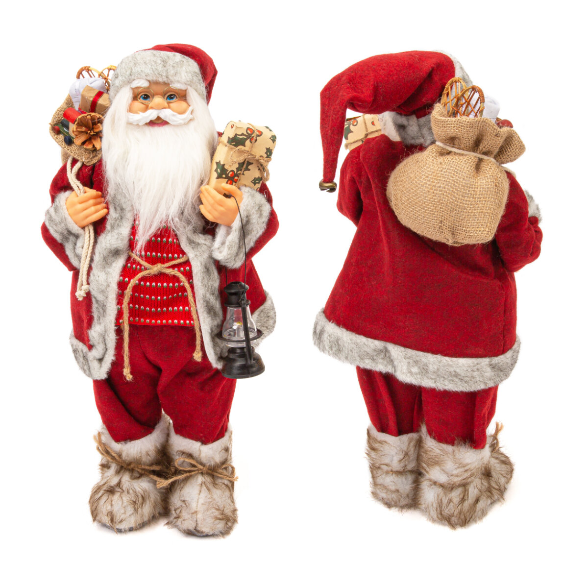 Новогодние украшения всегда несут в себе волшебство и ожидание чуда. Создайте с Winter Glade в своем доме атмосферу тепла, радости и веселья.Новогодняя фигурка - игрушка Дед Мороз под елку Winter Glade с мешком подарков, фонарем и подарком в руке высотой 60 см – это замечательный элемент декора и непременный атрибут украшения дома в преддверии празднования Нового Года и Рождества.