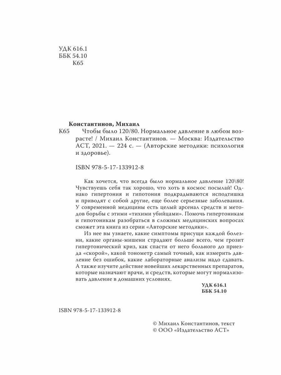 Чтобы было 120/80. Нормальное давление в любом возрасте! (Максим Алексеевич Константинов); АСТ, 2020