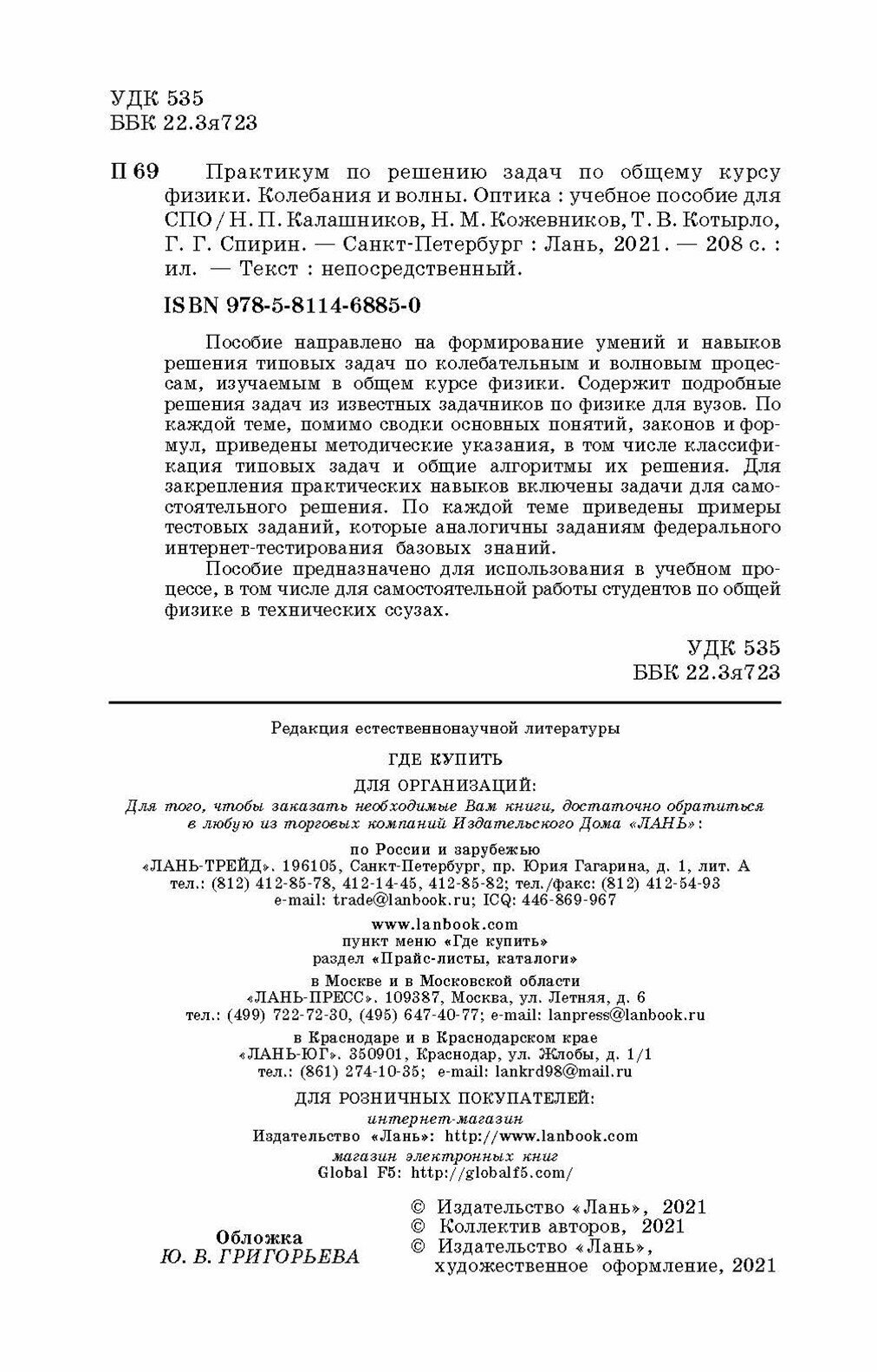 | ISBN | 978-5-8114-6885-0 |
