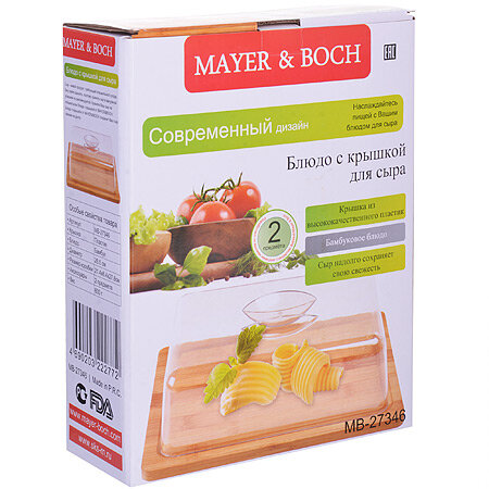 Длина: 26,5 см. Размер упаковки: 21,4 х 8,4 х 27,8 см. Сырница MAYER & BOSH с деревянным поддоном с крышкой станет отличным дополнением кухонного стола для любителей сыра. Великолепная износоустойчивость и стильный дизайн в сочетании с удобством использования делают эту модель идеальным средством для сохранения свежести сыра.