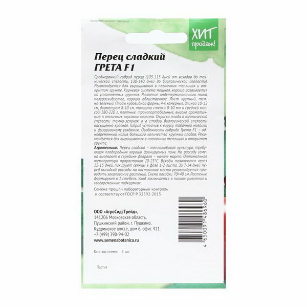 Сервис сравнения цен СкидкаГИД предлагает сравнить цены на товар «Семена Перец Аст Грета F1 5 шт АгроСидсТрейд»