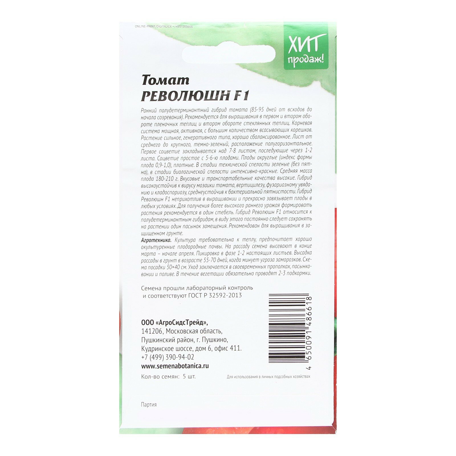 | Комплектация | Семена овощей Томат Революшн F1 5 шт - 1 уп |