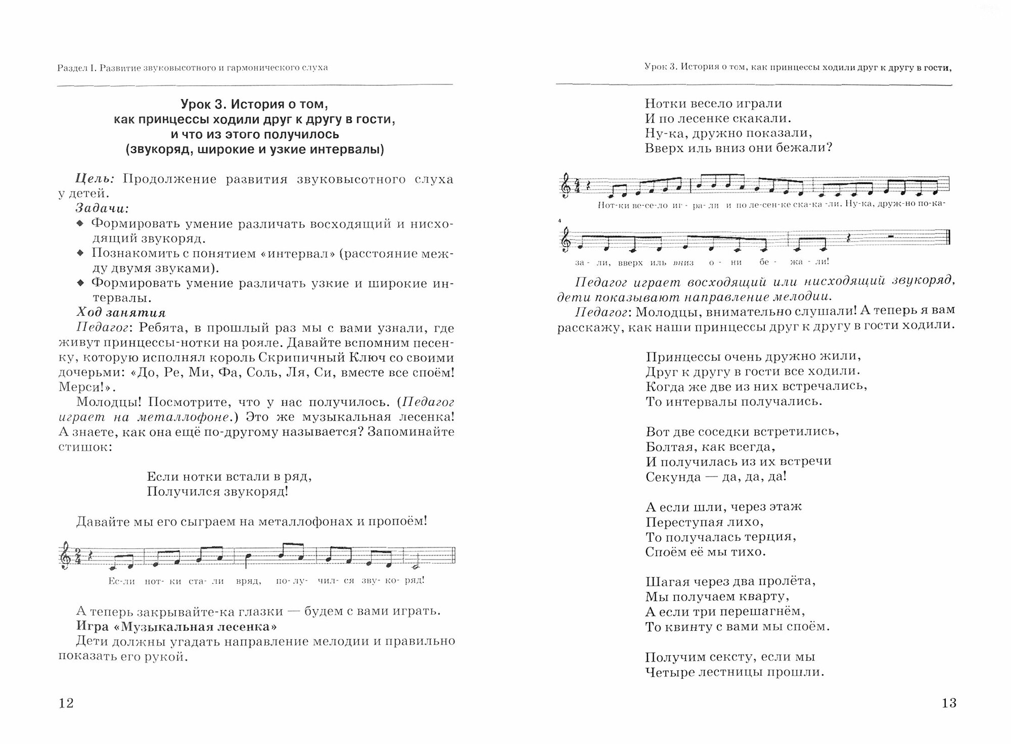 Уроки скомпонованы по разделам, каждый из которых направлен на совершенствование одного из видов музыкального слуха: звуковысотного и гармонического, динамического, ритмического, тембрового.