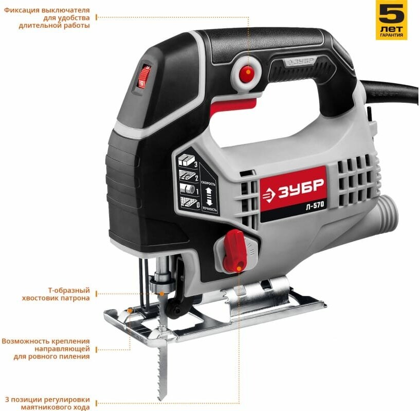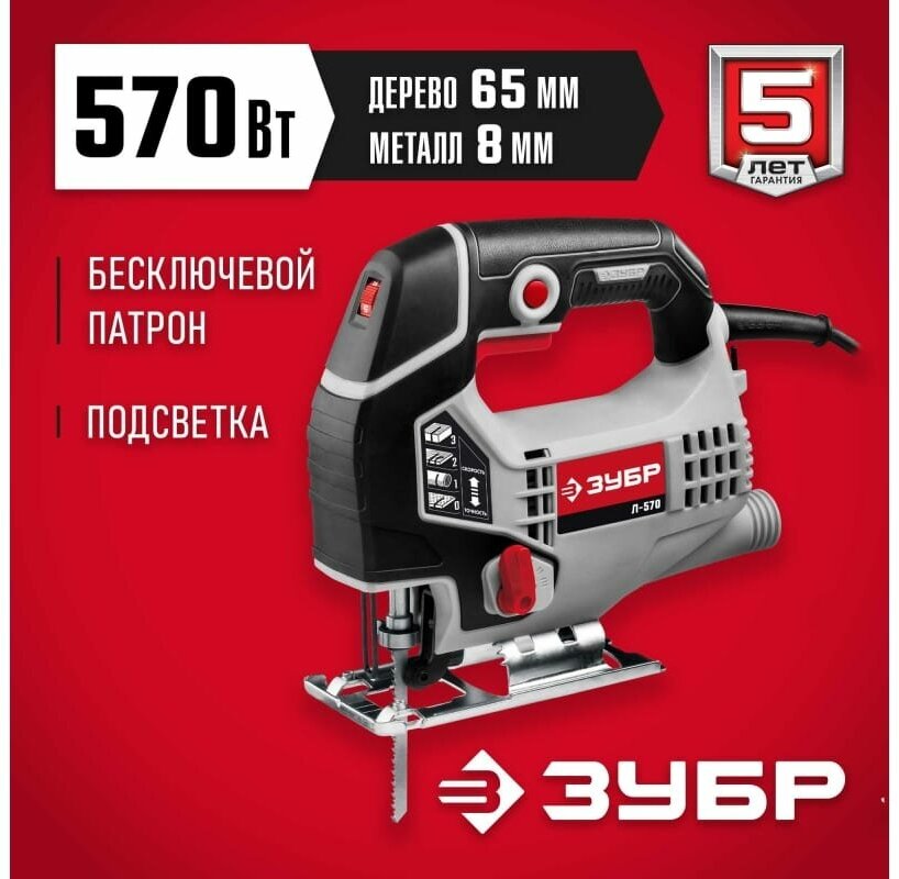 Лобзик Зубр удобный и функциональный инструмент для всех видов пиления различных материалов. 3-х режимный маятниковый ход с регулировкой оборотов и надежная конструкция являются оптимальным соотношением функциональности и качества работы. Мощность 570 Вт.