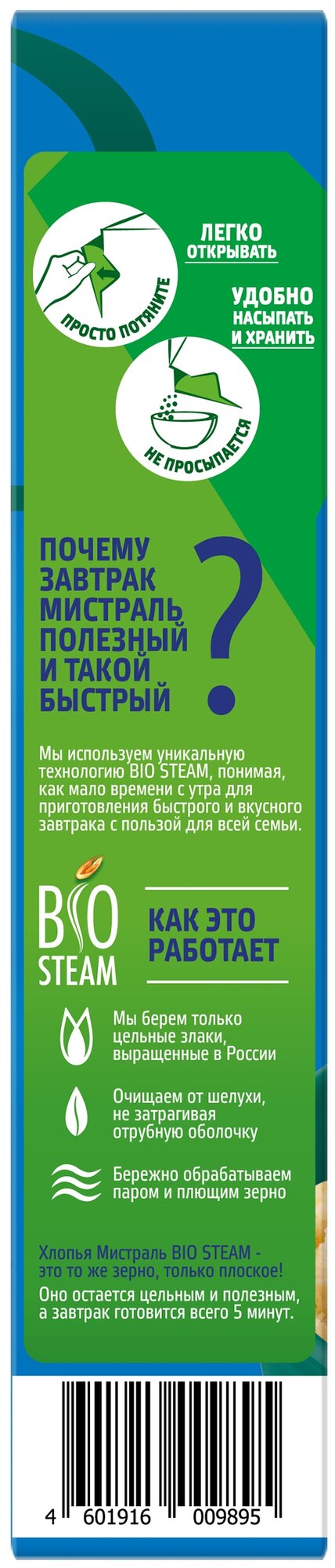 Описание товара:Хлопья Мистраль — это полезный завтрак, энергия и чувство сытости надолго. Витамины и минеральные вещества заряжают бодростью и хорошим настроением на целый день!Состав товара:Хлопья пшенные, хлопья из коричневого риса.Способ приготовления:Добавьте к хлопьям жидкость по вкусу в соотношении 1:2. Перемешайте, закройте крышкой и дайте настояться 5 минут.Меры предосторожности:Продукт может содержать следы глютена.
