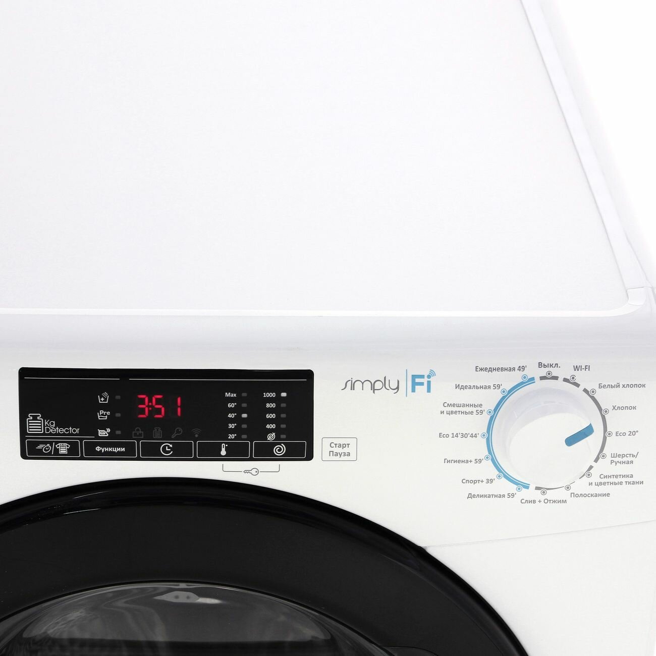 | Индикация | Включения, Времени до окончания программы /Продолжительность цикла, Отсрочки старта, Выбора оборотов отжима, Выбора температуры, Дополнительное полоскание, KG детектор. |