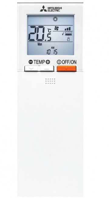 Внутренний блок Mitsubishi Electric укомплектован пультом ДУ с большой функциональностью, что позволяет в индивидуальном порядке настраивать его деятельность независимо от блоков в остальных помещениях. В блок встроен Wi-Fi интерфейс что обеспечивает прямую регулировку через Wi-Fi роутер за счет имеющейся "домашней сети" интернета.