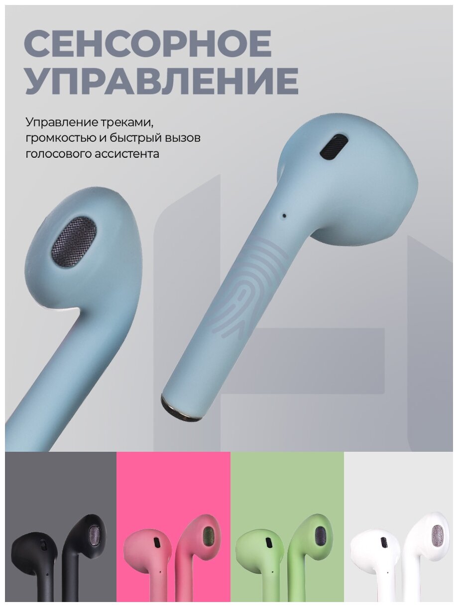 Яркие и компактные беспроводные наушники со всеми самыми современными функциями: зарядка за 1 час, Bluetooth 5.1 и обратная совместимость с более ранними стандартами, USB Type-C для зарядки кейса, сенсорное управление треками и громкостью, быстрый вызов голосового ассистента, автоматическое сопряжение без участия пользователя и качественное звучание. Осталось добавить индивидуальности? На выбор: зелёный, синий и розовый цвета. Есть и классика – белые или чёрные.
