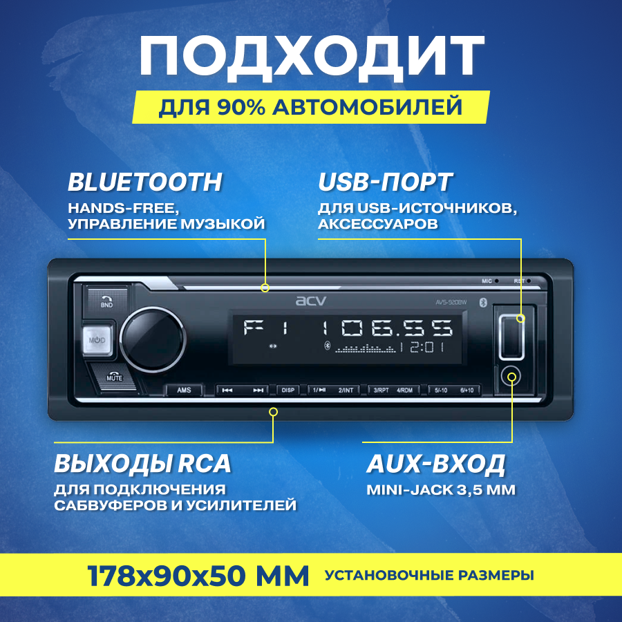 Бездисковая автомагнитола ACV AVS-920BW