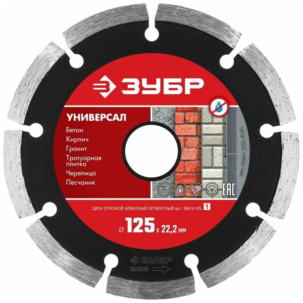 Алмазный диск ЗУБР УНИВЕРСАЛ по бетону 125мм 1.9мм 22.2мм 1шт [36610-125_z01]