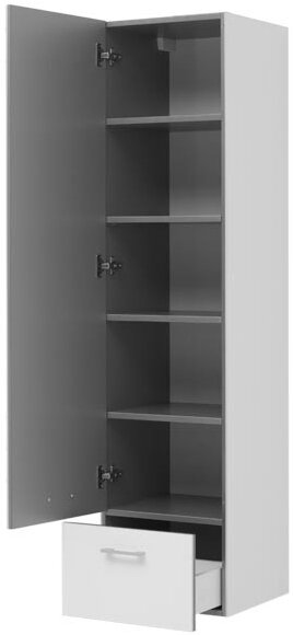 Навесной пенал Верона - олицетворение простоты и функциональности. Отсутствие лишнего декора и строгие, классические формы шкафа позволят вписать его в любой интерьер, а нейтральный оттенок будет хорошо сочетаться с любыми, даже самыми яркими цветами и узорами. В верхней части пенала расположено большое отделение с распашной дверцей, снизу предусмотрен компактный выдвижной ящик.