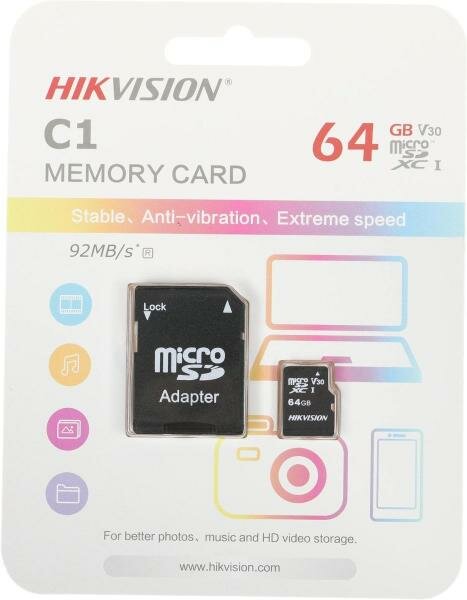 Карта памяти 64GB HIKVISION MicroSDXC Class 10 92MB/s/30MB/s HS-TF-C1/64G