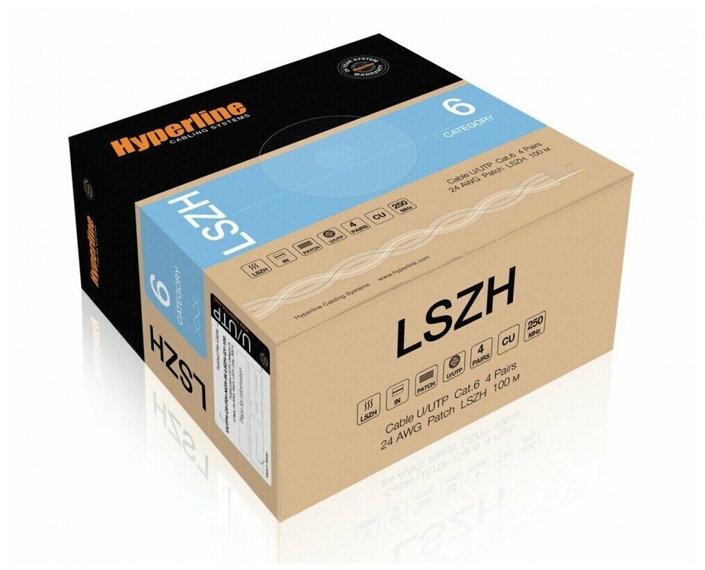 Кабель витая пара UTP 6 кат. 4 пары Hyperline UUTP4-C6-P24-NCR-IN-LSZH-GY-100
