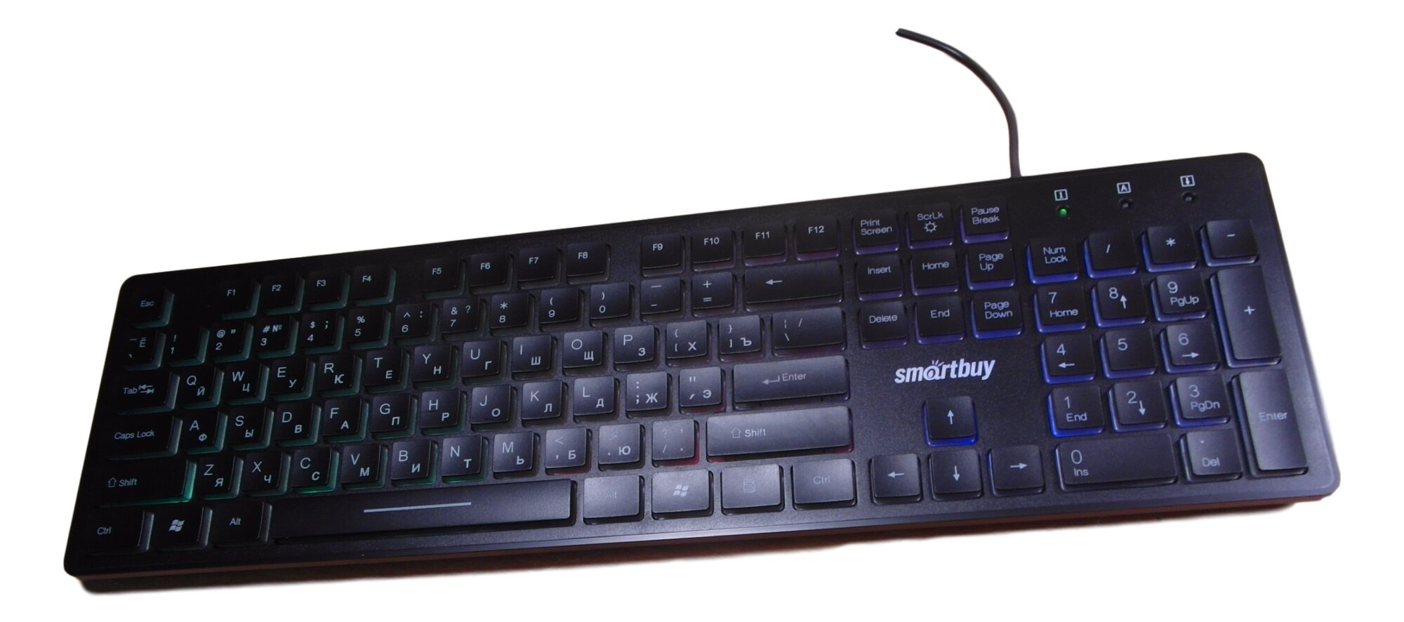 Проводная клавиатура с подсветкой Smartbuy обеспечит вас всем необходимым для комфортной работы либо развлечений. Клавиатура имеет современный стильный дизайн. Включение и выключение подсветки происходит нажатием клавиши Scroll Lock.