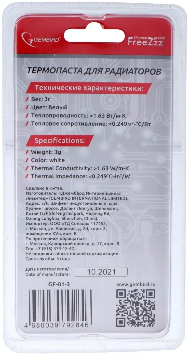 Термопаста Gembird FreeZzz GF-01-3