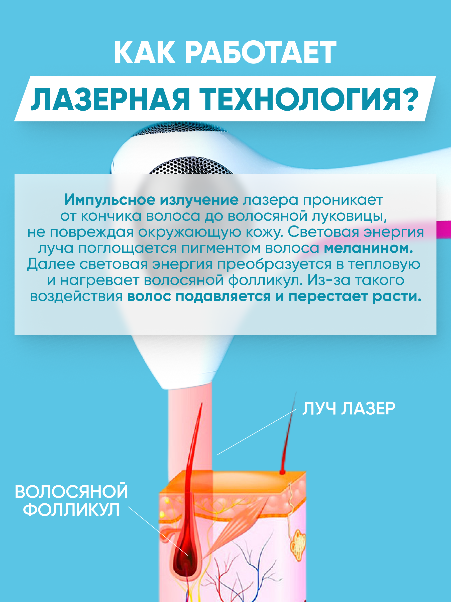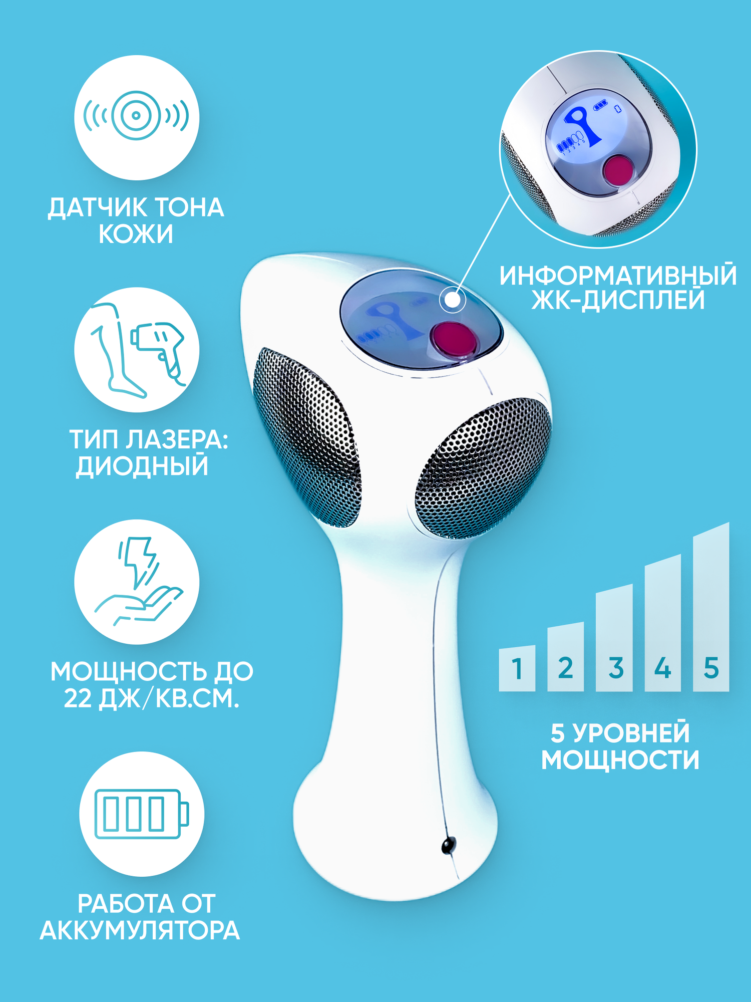 Лазерный эпилятор для домашнего использования. Это устройство для удаления нежелательных волос, адаптированное для безопасного использования в комфортной домашней обстановке. Гарантирует гладкую кожу и быстрое сокращение роста волос после полного курса применения. Беспроводная система идеальна для использования на теле и лице. С помощью зарядного устройства зарядите лазер, а затем пользуйтесь им в любом месте, где вам удобнее всего. Аппликатор излучает лазерный свет во время применения.