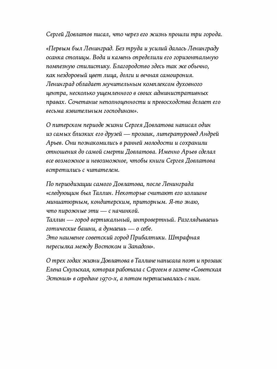 В сборнинике участвуют три автора, бывшие близки к Довлатову в трех разных городах его жизни.