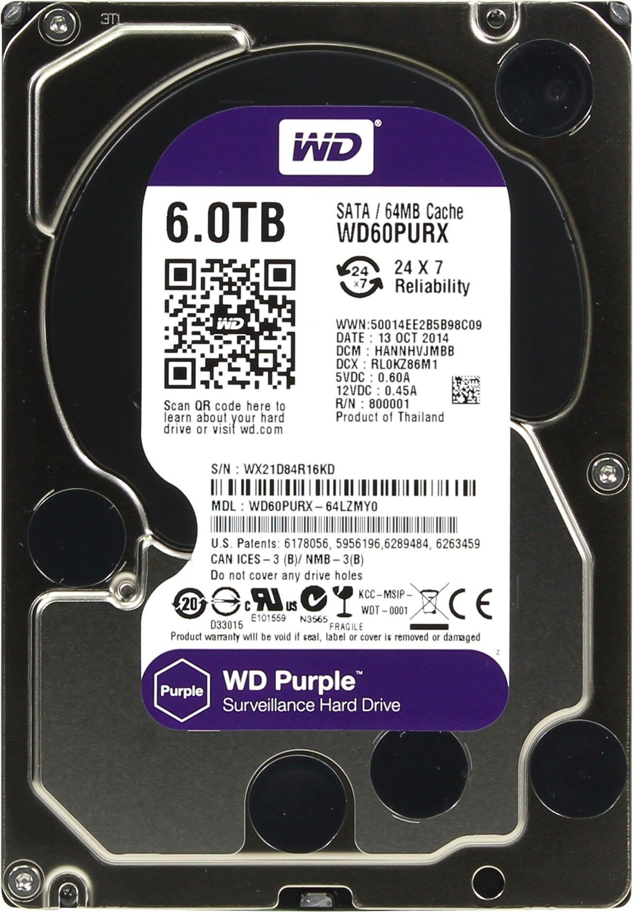 Модель: Purple для систем видеонаблюдения 6TB 3.5"