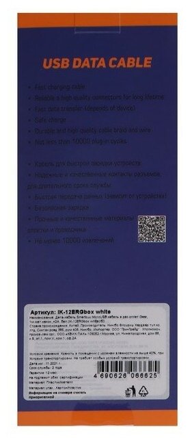 | Наименование модели | microUSB 1м White (iK-12ERGbox) |