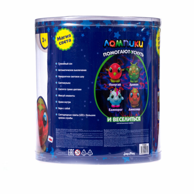 Светильник-игрушка, который станет отличным другом для ребёнка. Яркий персонаж "Динозавр" принесёт немного магии и волшебства в Ваш дом.Это не только ночник, который реагирует на свет и светится разными цветами, но ещё и проектор, ведь, если открыть крышку, то огоньки проецируются на стены и потолок, создавая невероятную атмосферу вокруг.