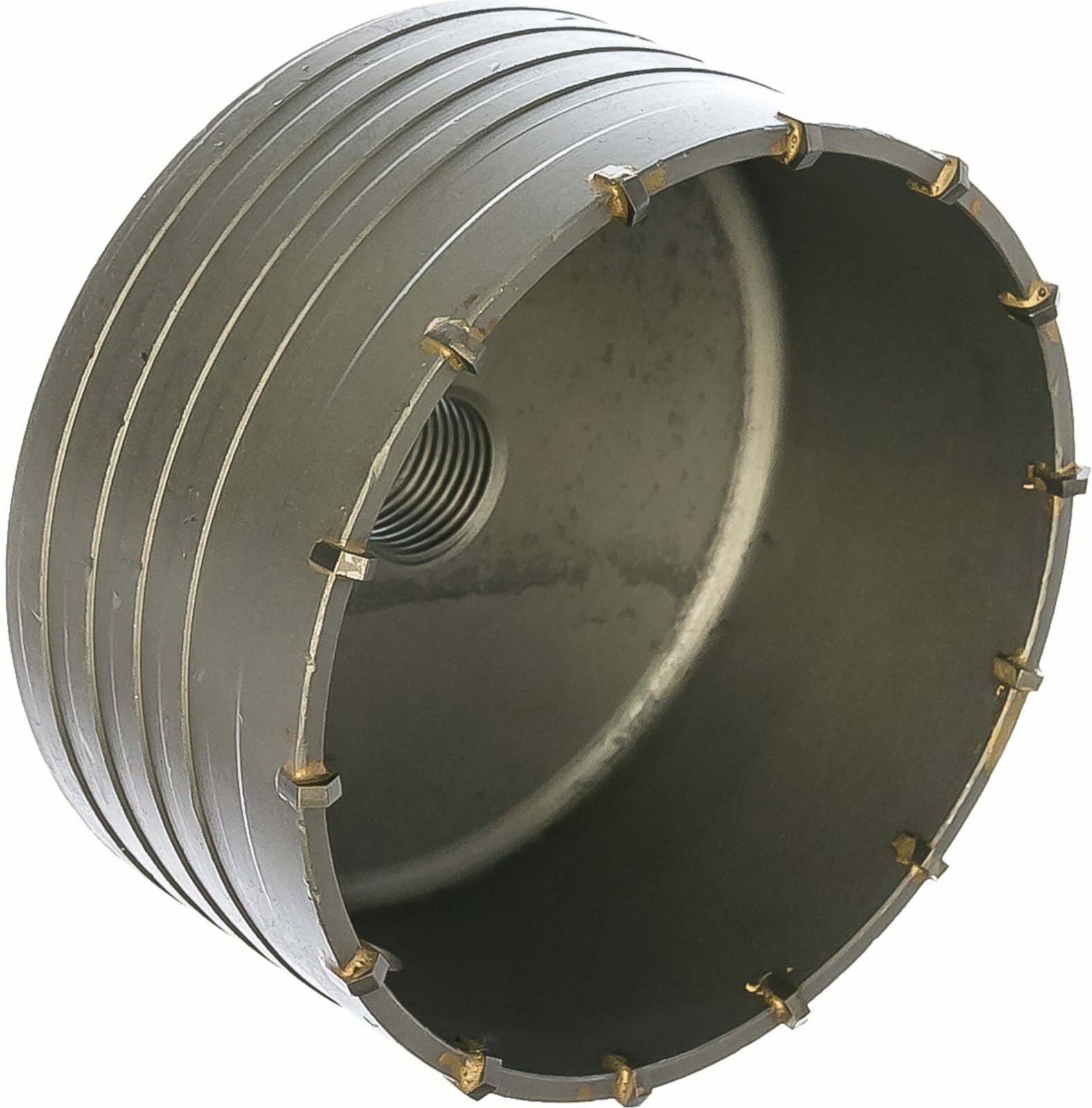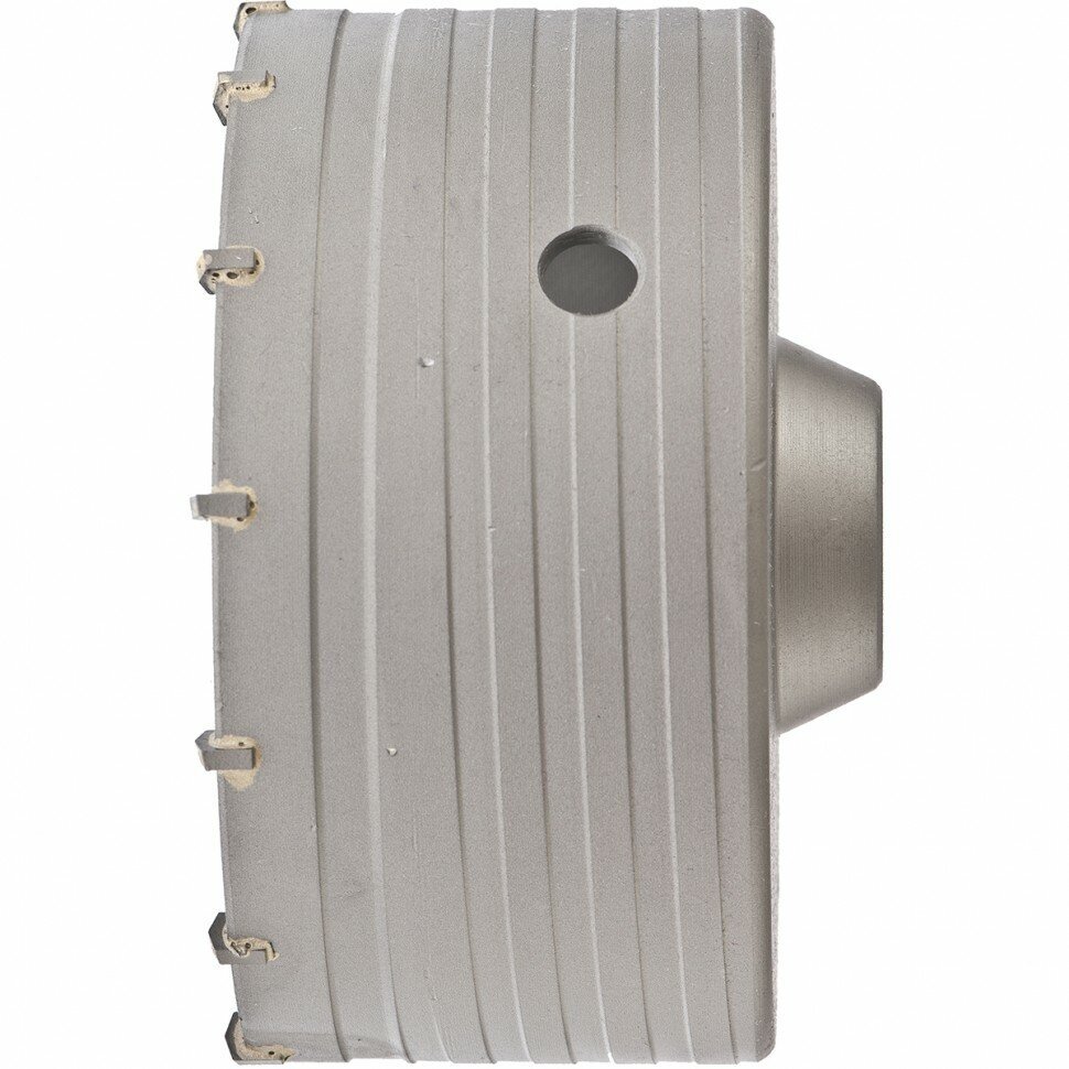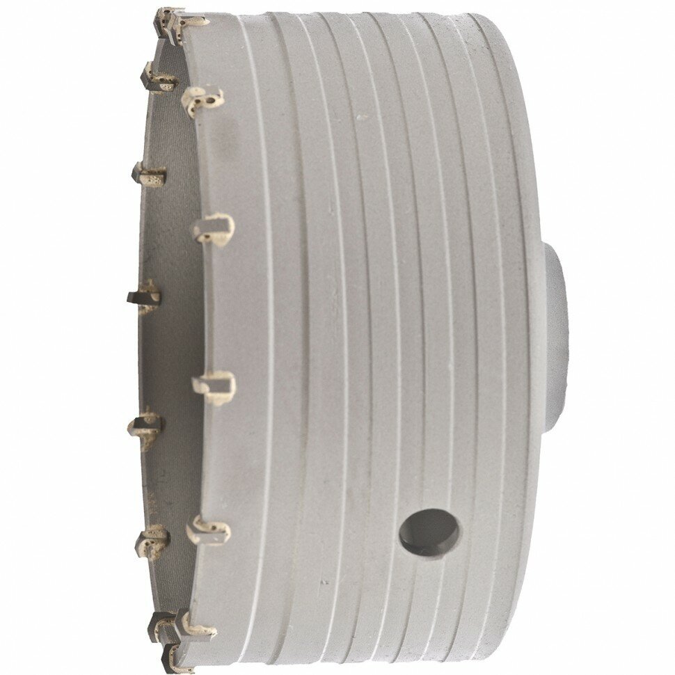 - На внешней стороне коронки нарезана спиральная канавка для улучшения вывода продуктов сверления и снижения нагрузки на перфоратор.
