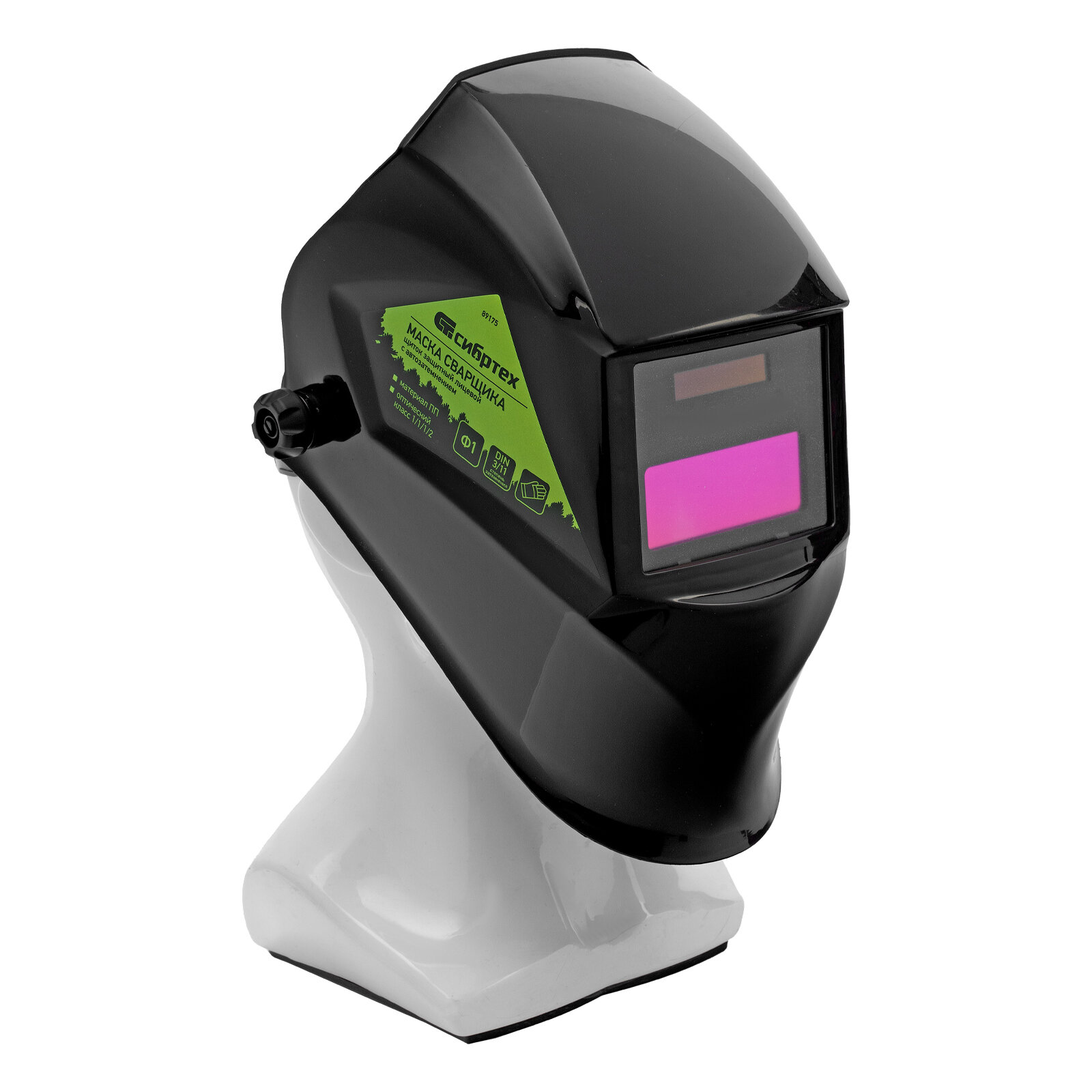 Маска типа «хамелеон» Сибртех Ф1, надежно защитит от искр, брызг и вредных излучений сварочной дуги при сварочных работах: MIG, MAG/CO2, SMAW, TIG, PLASMA. Имеются 2 независимых фотодатчика. Храповой механизм регулировки посадки оголовья. Корпус защитного щитка изготовлен из жароупорной пластмассы.