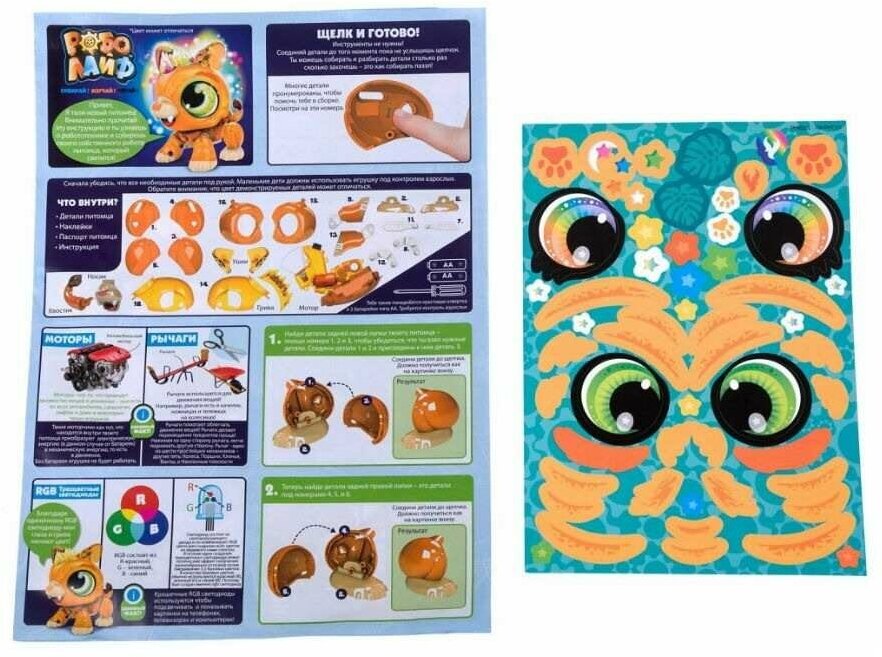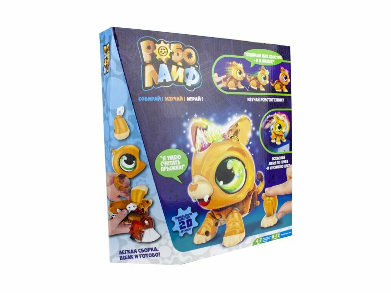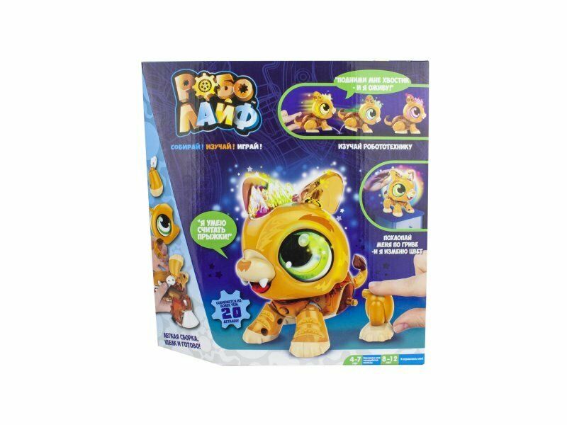 - Из 20 деталей набора удастся собрать роботизированного рыжего львенка.