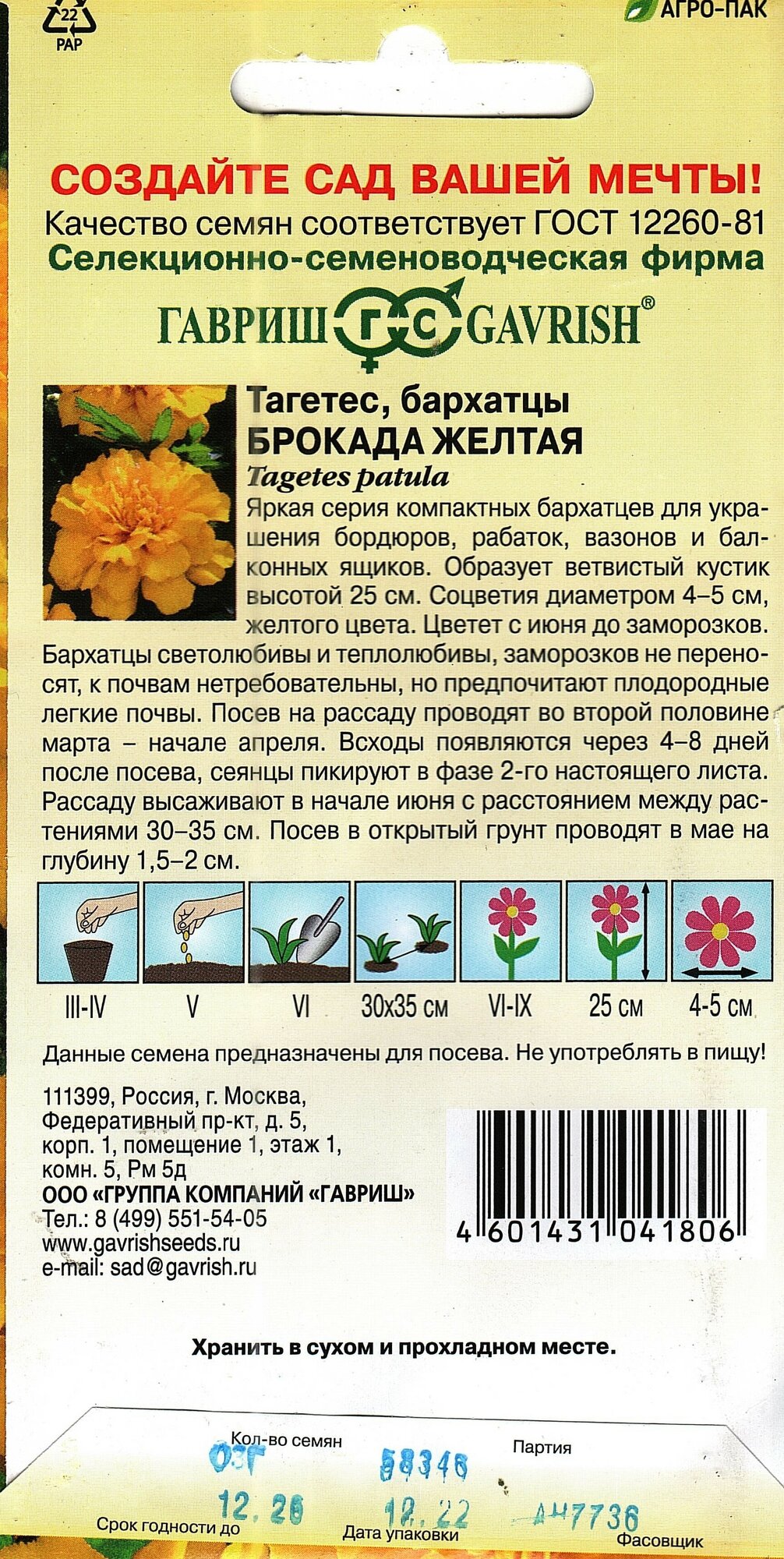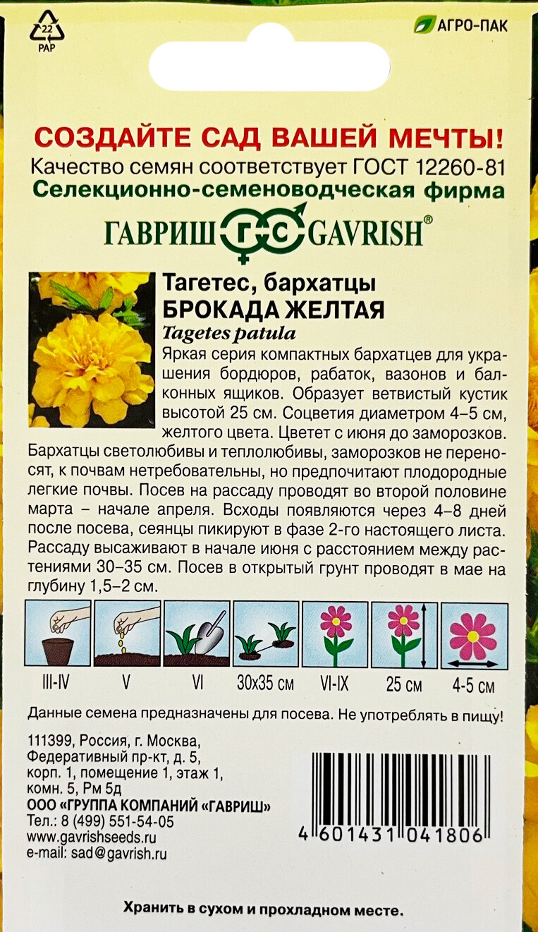 Модель: бархатцы брокада желтые 0,3 г