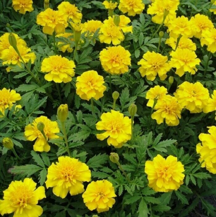 Бархатцы- это моя любовь! Сажаю в горшки, на грядках с клубникой и овощами сразу в открытый грунт. Покупаю в Порядке сразу все сорта какие есть в продаже по 1- 2 упаковке. Жаль, что в интернет- магазине продают по 10 упаковок одного сорта, поэтому приходится выбирать в магазине. Все сорта имеют хорошую всхожесть, обильно цветут до самых морозов.
