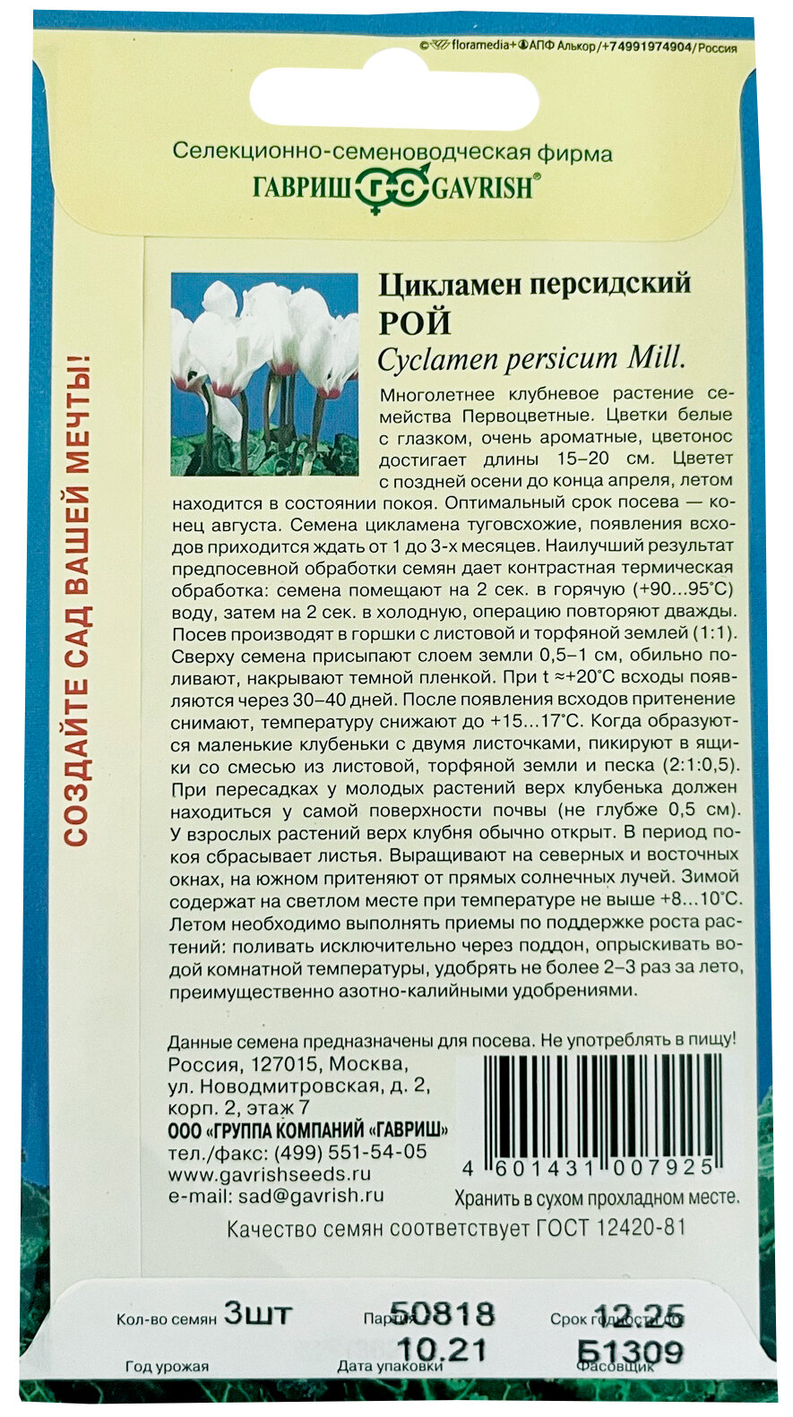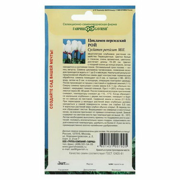 Семена ГАВРИШ цикламен рой персидский 3 шт