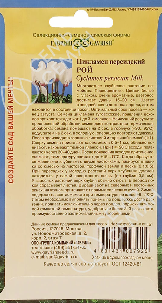 Сервис сравнения цен СкидкаГИД предлагает сравнить цены на товар «Семена ГАВРИШ цикламен рой персидский 3 шт»