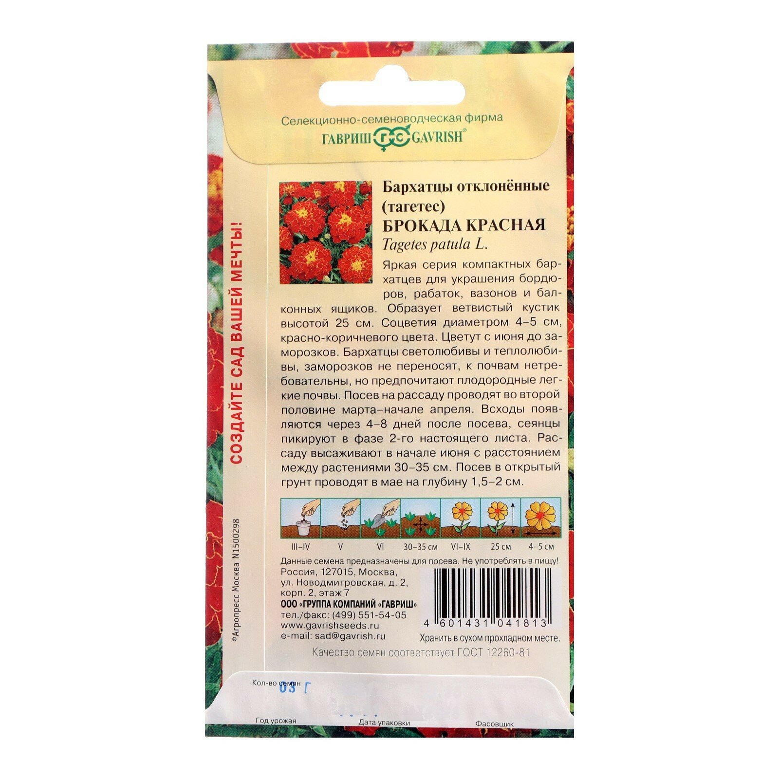 Семена ГАВРИШ бархатцы брокада красные 0,3 г