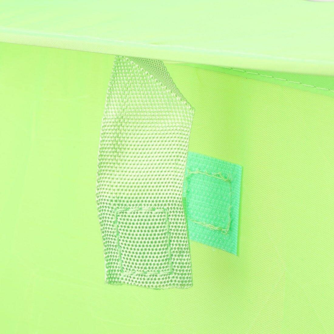 Корзина с ярким дизайнерским оформлением «Гусеничка» прекрасно впишется в интерьер детской комнаты. Она предназначена для компактного хранения игрушек или вещей ребёнка. В сложенном виде корзина не занимает много места, удобно складывается и легко раскладывается. Изделие выполнено в ярко-зелёной расцветке, на крышке изображена милая гусеница. По бокам есть 2 текстильные ручки для переноски. Крышка закрывается на липучку. Размер корзины в разложенном виде (ДхШхВ) составляет 45х45х45 см. Изделие изготовлено из текстильных материалов. Рекомендованный возраст: 3 года +