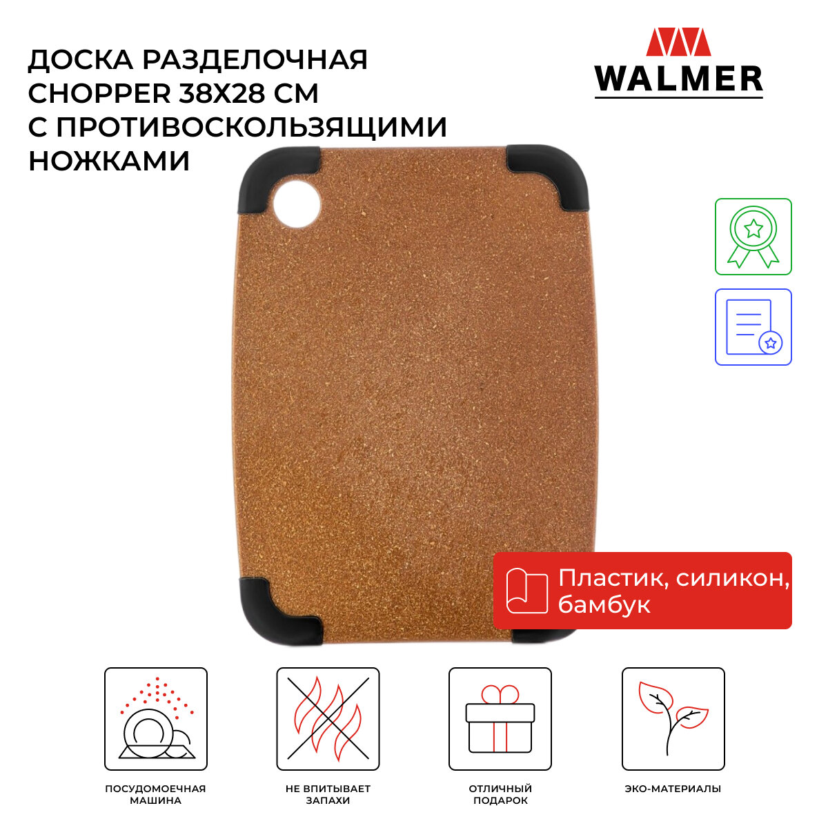 Доска разделочная 30 х 225 см Walmer Eco Chop Разделочная доска Eco Chop 30х22.5х0.6 см