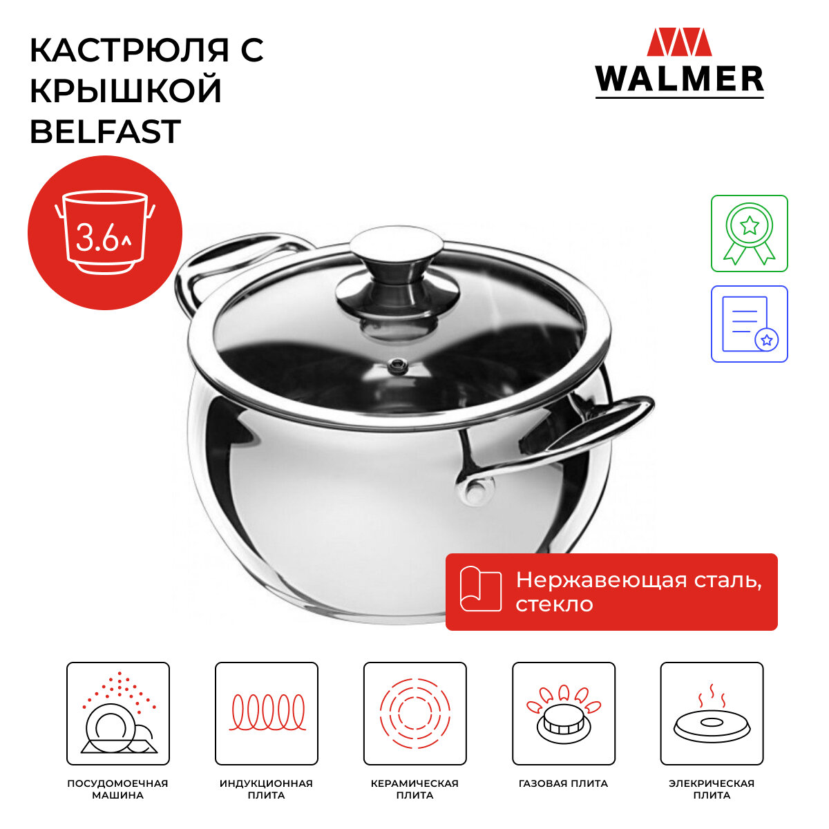Сервис сравнения цен СкидкаГИД предлагает сравнить цены на товар «Кастрюля Walmer Belfast W11000220 Кастрюля с крышкой Belfast 3.6 л»